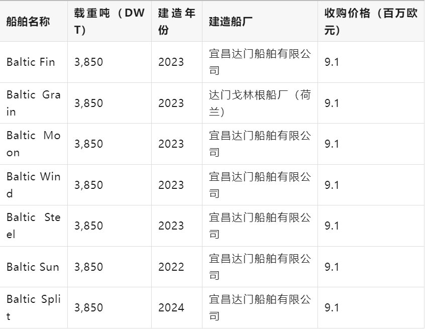 此次收购的六艘船舶包括建造年份在2022年至2024年的MV Baltic Fin、Baltic Grain、Baltic Moon、Baltic Wind、Baltic Steel和Baltic Sun。这些船舶每艘造价约910万欧元,平均船龄不到两年,非常年轻。